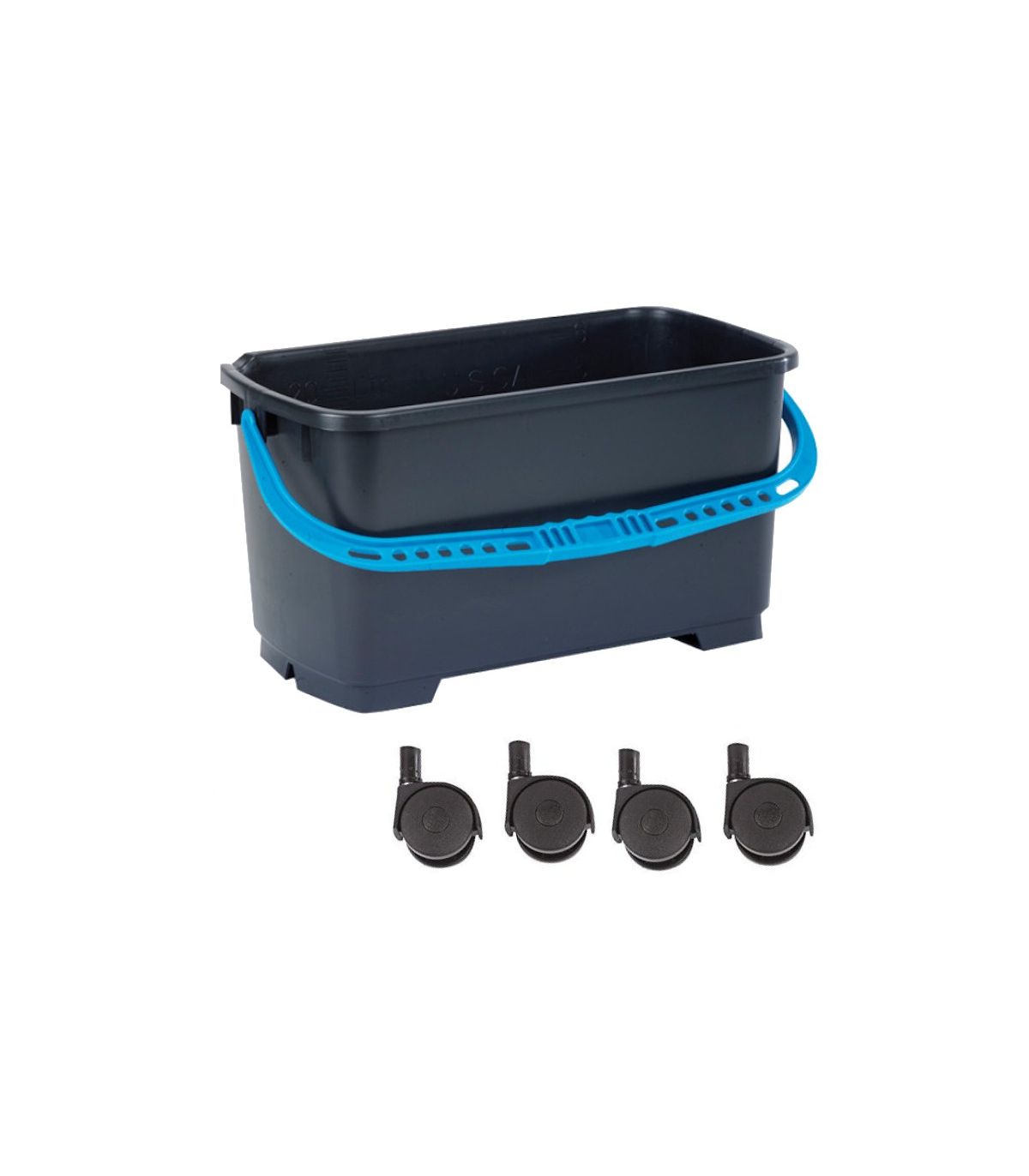 Wiadro dostępne w dwóch wariantach; z samymi klipsami  lub z klipsami i kółkami transportowymi.