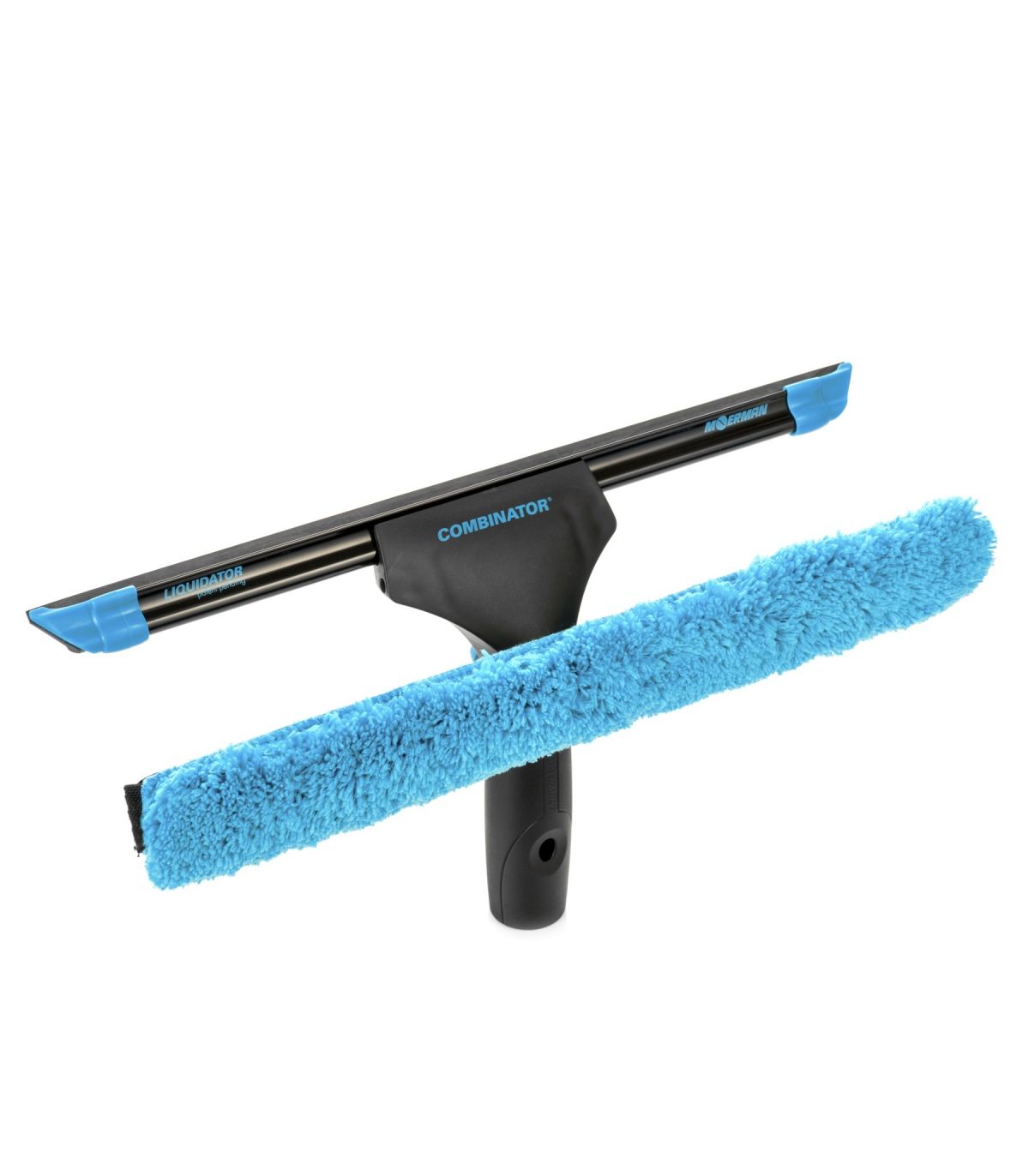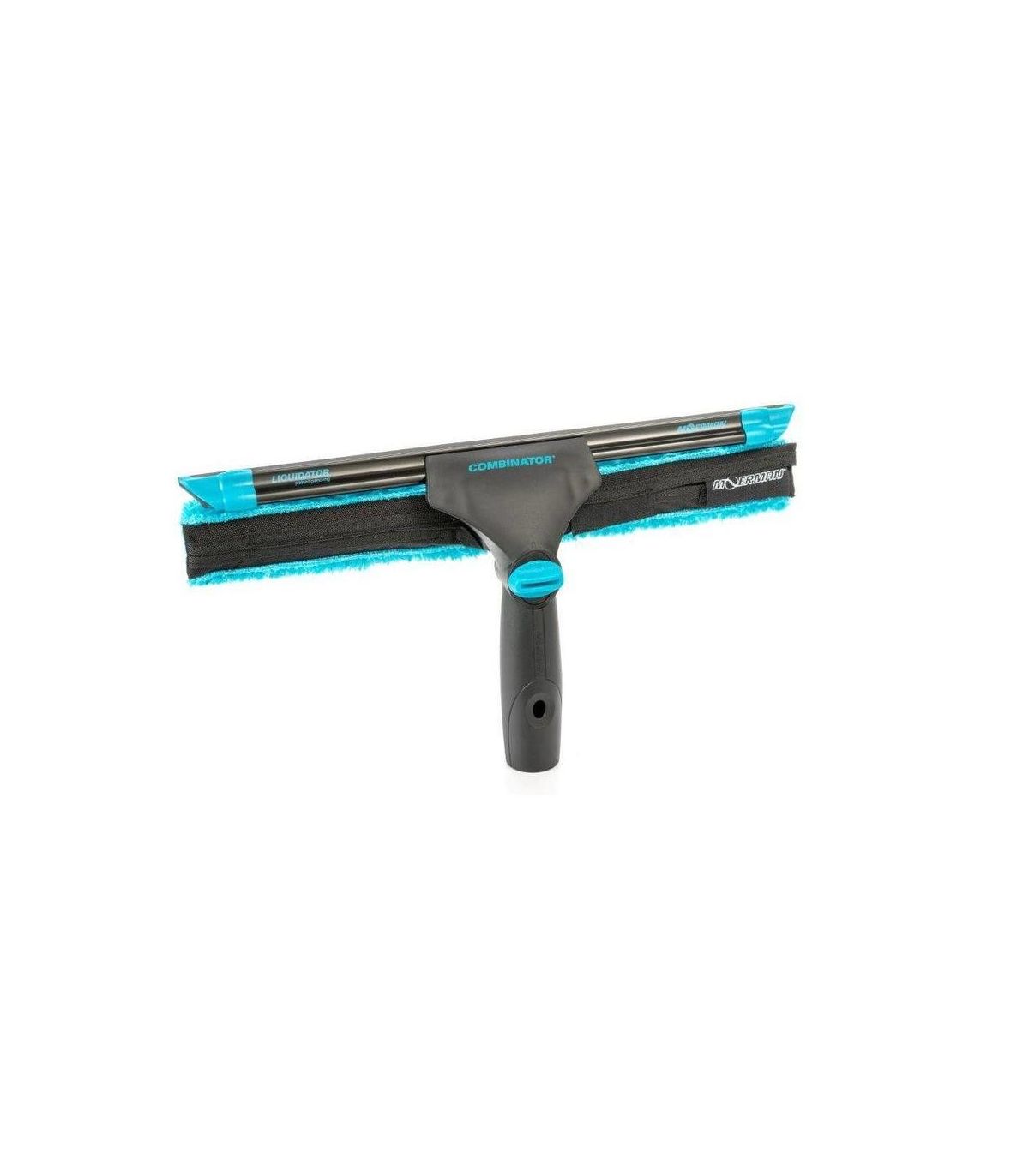 Rewelacyjny zestaw belgijskiej marki MOERMAN przeznaczony do profesjonalnego mycia okien i wszelkiego rodzaju przeszkleń. Kompletny zestaw Combinator z rączką, listwą Liquidator o szerokości 35 cm oraz wysokiej jakości barankiem z mikrofazy do montażu na stelażu z przodu lub z tyłu listwy.