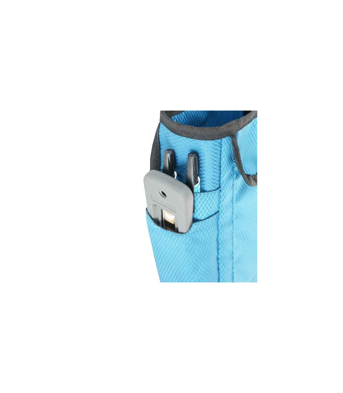 Wytrzymała i lekka torba z praktycznymi przegródkami o wymiarach 32x39cm. Przeznaczona do podpięcia na pasie i przechowywania akcesoriów do mycia okien. Dwie przedziałki do rozdzielenia akcesoriów wewnątrz torby, jedna mniejsza kieszeń zapinana na rzep oraz zewnętrza kabura na butelkę i mniejsze przegródki na zbierak czy wymienne gumy. Mnogość kieszonek pozwala na zabranie najpotrzebniejszych akcesoriów czy przechowywanie napoju.