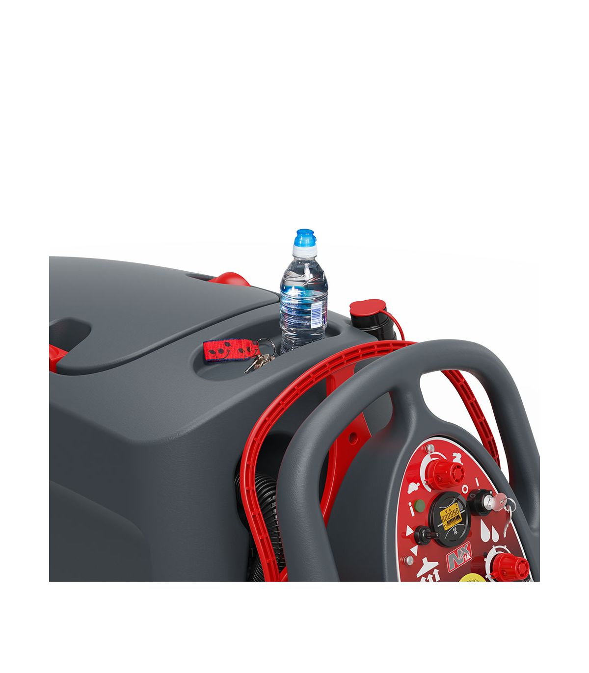 Ten automat jest wyposażony w regulowaną trakcję (napęd na koła), która znacząco ułatwia prowadzenie maszyny oraz pozwala na czyszczenie powierzchni pochyłych i prowadzenia maszyny pod górkę bez wysiłku.