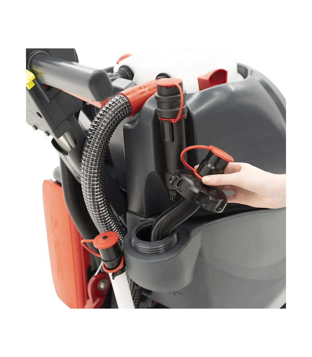 Maszyna TTB 30450 NX przeznaczona jest do codziennego zmywania posadzek twardych na małych i średnich powierzchniach, wąskich korytarzach oraz w trudno dostępnych miejscach. Jednocześnie zmywa i osusza powierzchnie a wysokowydajny silnik ssący oraz nowoczesna ssawa gwarantują brak smug oraz zacieków na podłodze. Wygodne napełnianie zbiornika oraz łatwe i szybkie wylewanie wody poprzez wąż spustowy od dużej średnicy.