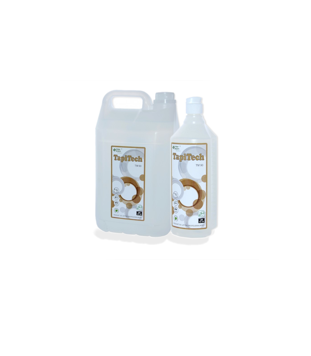 TapiTech TM90 to skoncentrowany, profesjonalny preparat do ekstrakcyjnego prania dywanów, wykładzin, tapicerek meblowych oraz samochodowych. Posiada silne właściwości rozpuszczające brud oraz plamy. Pozostawia przyjemny zapach. Nie działa agresywnie na praną powierzchnie, posiada substancje chroniące włókna przez ponownym szybkim przyjmowaniem brudu.