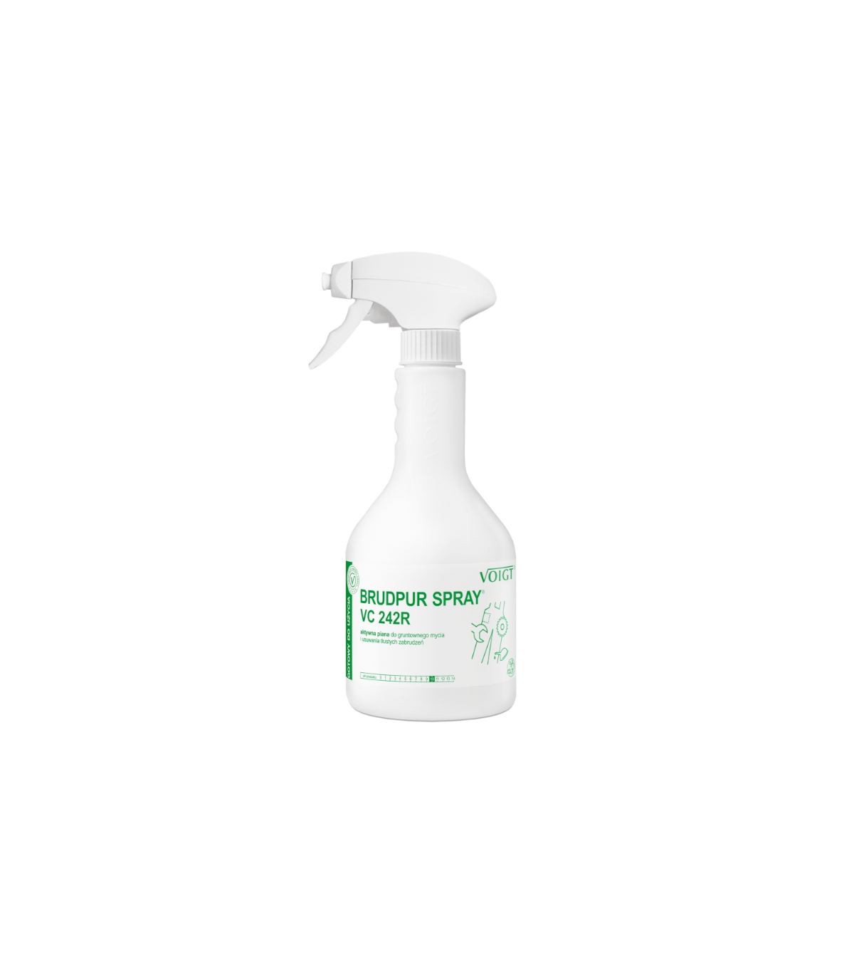 Jeden z najpopularniejszych produktów marki VOIGT teraz dostępny w nowej, wygodnej odmianie. VC 242R BRUDPUR SPRAY to gotowy do użycia preparat w formie aktywnej piany do gruntownego mycia i odtłuszczania powierzchni. Skutecznie eliminuje uporczywy brud, zabrudzenia olejowe, smary czy tłuste plamy. Niezastąpiony każdym domu, garażu czy na działce.