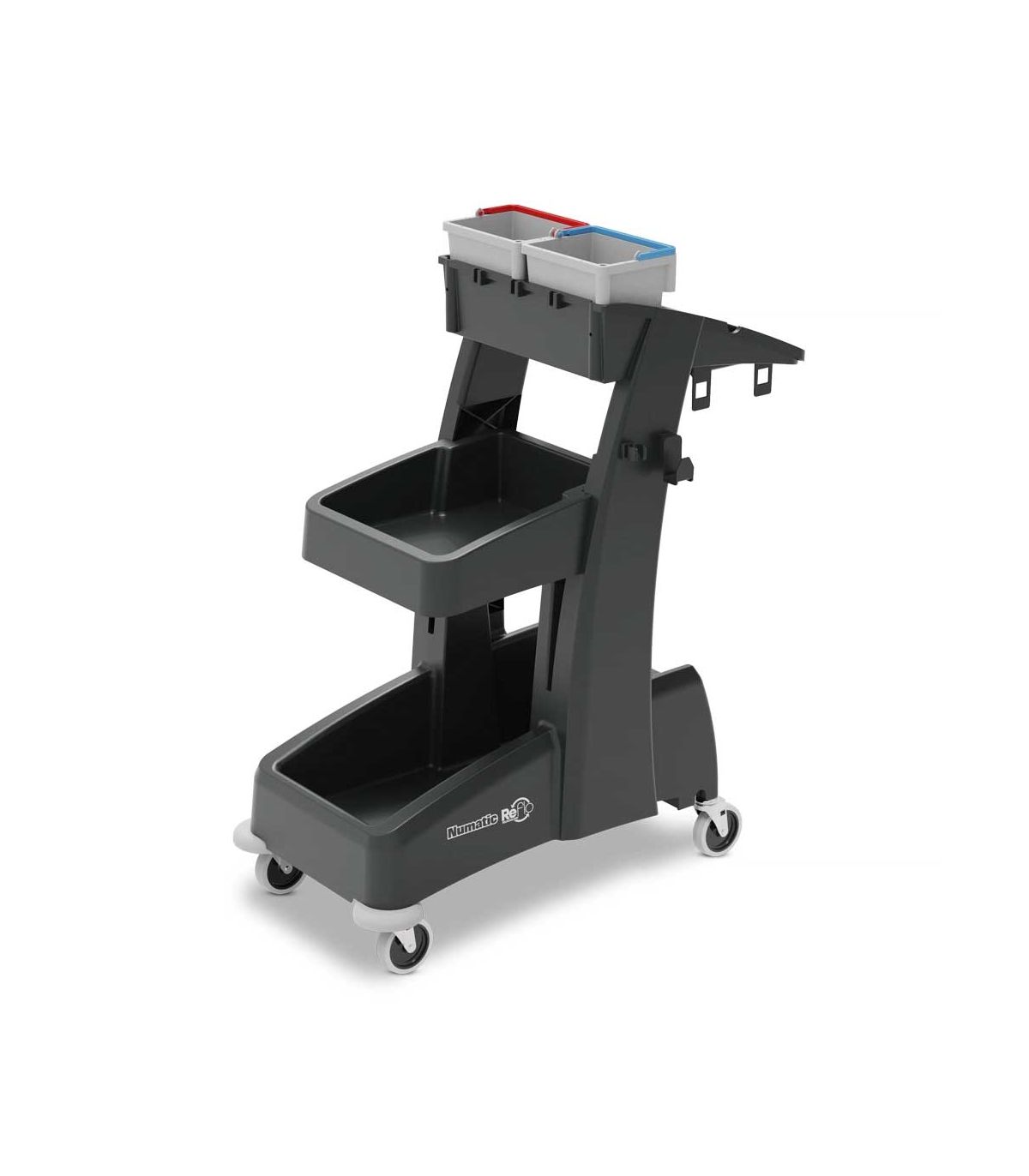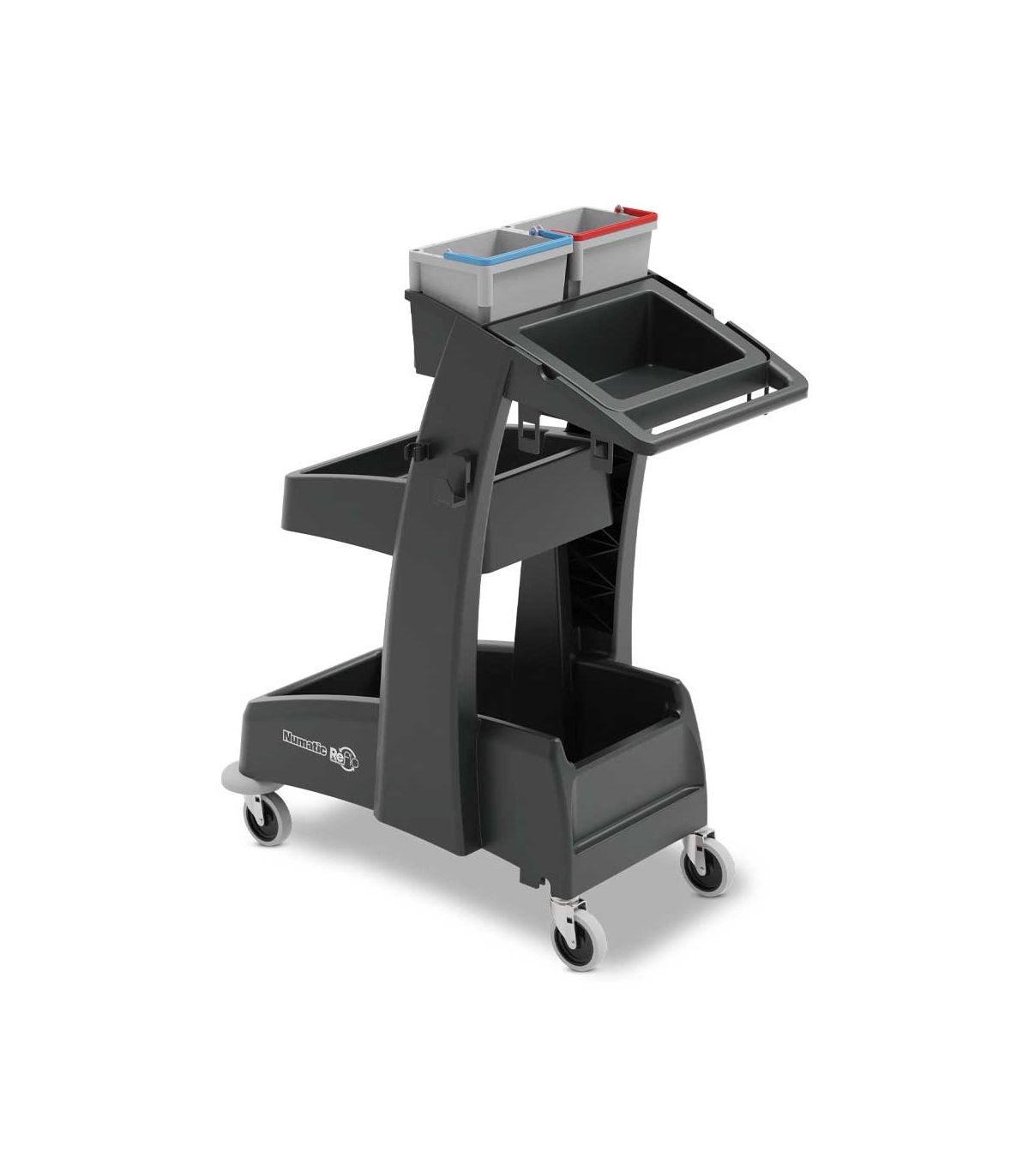 Kompaktowy i lekki wózek o łącznej pojemności 43L z dwoma osobnymi wiadrami na brudną i czystą wodę. Podstawa wózka została odlana z tworzywa Structofoam, specjalnej kompozycji odpornej na obicia oraz pęknięcia. W przeciwieństwie do ram metalowych jest lżejsza i nigdy nie skoroduje. Wygodny, wysoki stelaż ułatwia transport i operowanie zestawu a cztery w pełni skrętne kółka z łożyskami kulkowymi gwarantują długą bezawaryjną prace. Model TMR 2815 został wyposażony w tę samą, niezawodną i uniwersalną wyciskarkę Numatic co wyższe modele. Nadaje się do wyciskania każdego rodzaju mopa, zarówno płaskich jak i okrągłych czy dużych mopów "Kentucky". Wysoko umieszczona prasa z długą rączką pozwala na wygodne płukanie i wyciskanie mopów bez konieczności ciągłego schylania się. Dodatkowa tylna kuweta pozwala na przewożenie drobnych akcesoriów czyszczących i środków czystości. Powiększona pojemności wiadra na czystą wodę pozwala na czyszczenie większych powierzchni bez częstej wymiany wody. Zestaw świetnie sprawdzi do utrzymania czystości podłóg w przedszkolach, szkołach, biurach, domach czy przychodniach a wysoka jakość wykonania zagwarantuje wieloletnią bezproblemową eksploatacje.