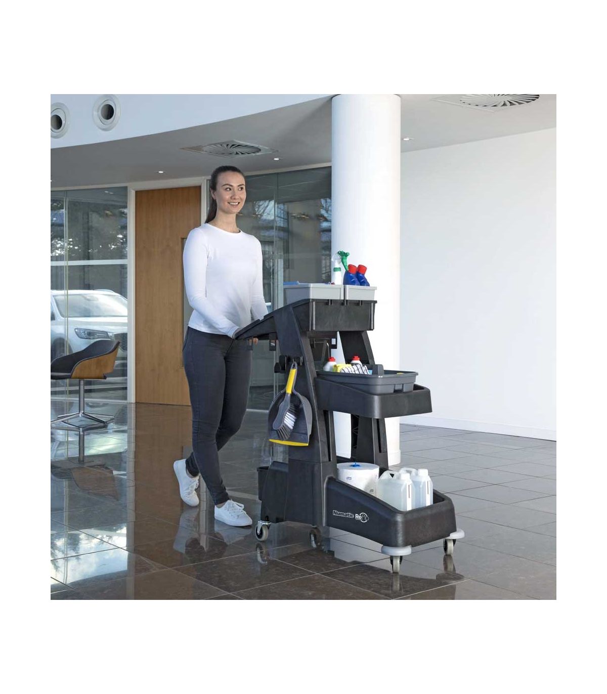 Wózek MM5 MultiMatic to wydajne i funkcjonalne narzędzie do profesjonalnego sprzątania małych przestrzeni, takich jak sklepy, szkoły, szpitale, biura, a nawet domy. Oferuje wiele funkcji, dzięki którym czyszczenie podłóg jest prostsze i łatwiejsze. Ze względu na swoją lekką konstrukcję wózek znakomicie sprawdza się w przestrzeniach o ograniczonym dostępie.