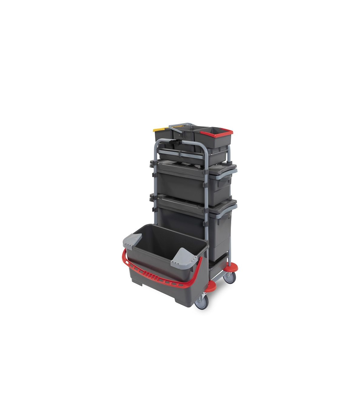 Wiadro posiada opatentowany system bezdotykowego zrzucania brudnego mopa do wiadra - Touch Free System. Dzięki temu nigdy nie dotykamy brudnego mopa. Za pomocą innowacyjnych skrzydełek stelaż mopa składa się i mop sam spada do wiadra. Operator nigdy nie ma kontaktu ze stelażem i mopem, nie musi schylać się w celu zdejmowania mopa.