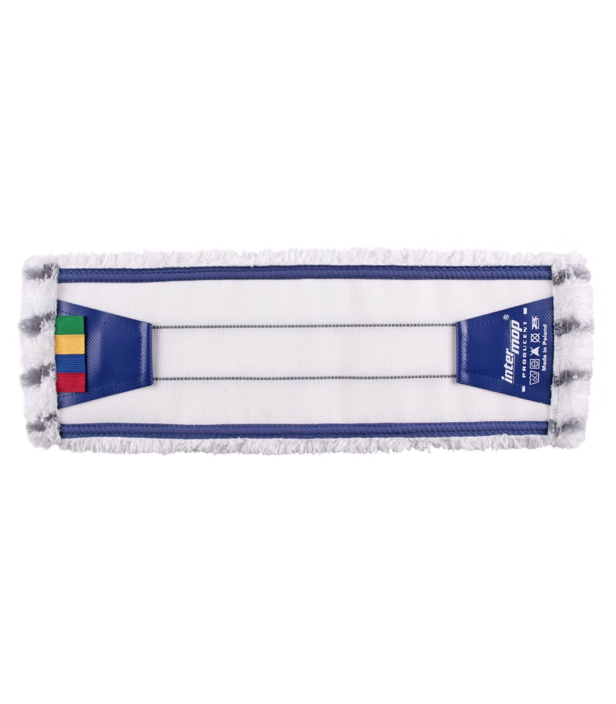 Najwyższej jakości płaski mop z mikrofazy z wszytymi paskami doczyszczającymi polskiej firmy Intermop. Dwie wszyte tasiemki do stelaża w systemie TES. Przed pierwszym użyciem zaleca się przepranie mopa w celu poprawienia chłonności.