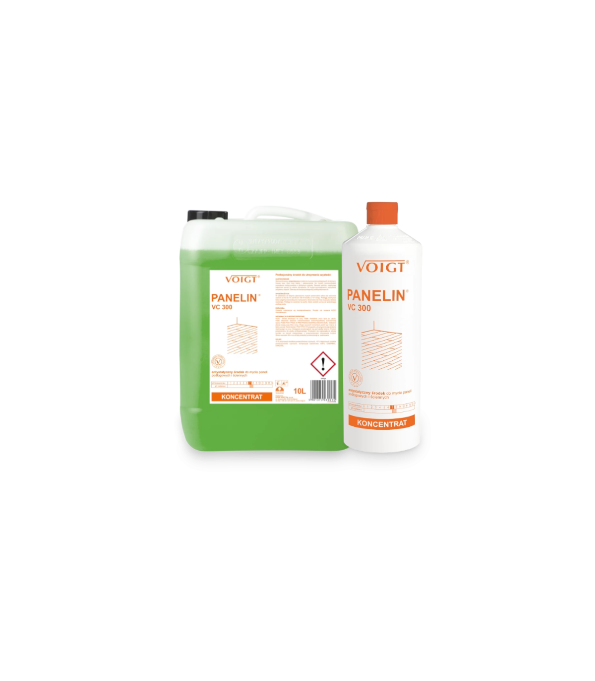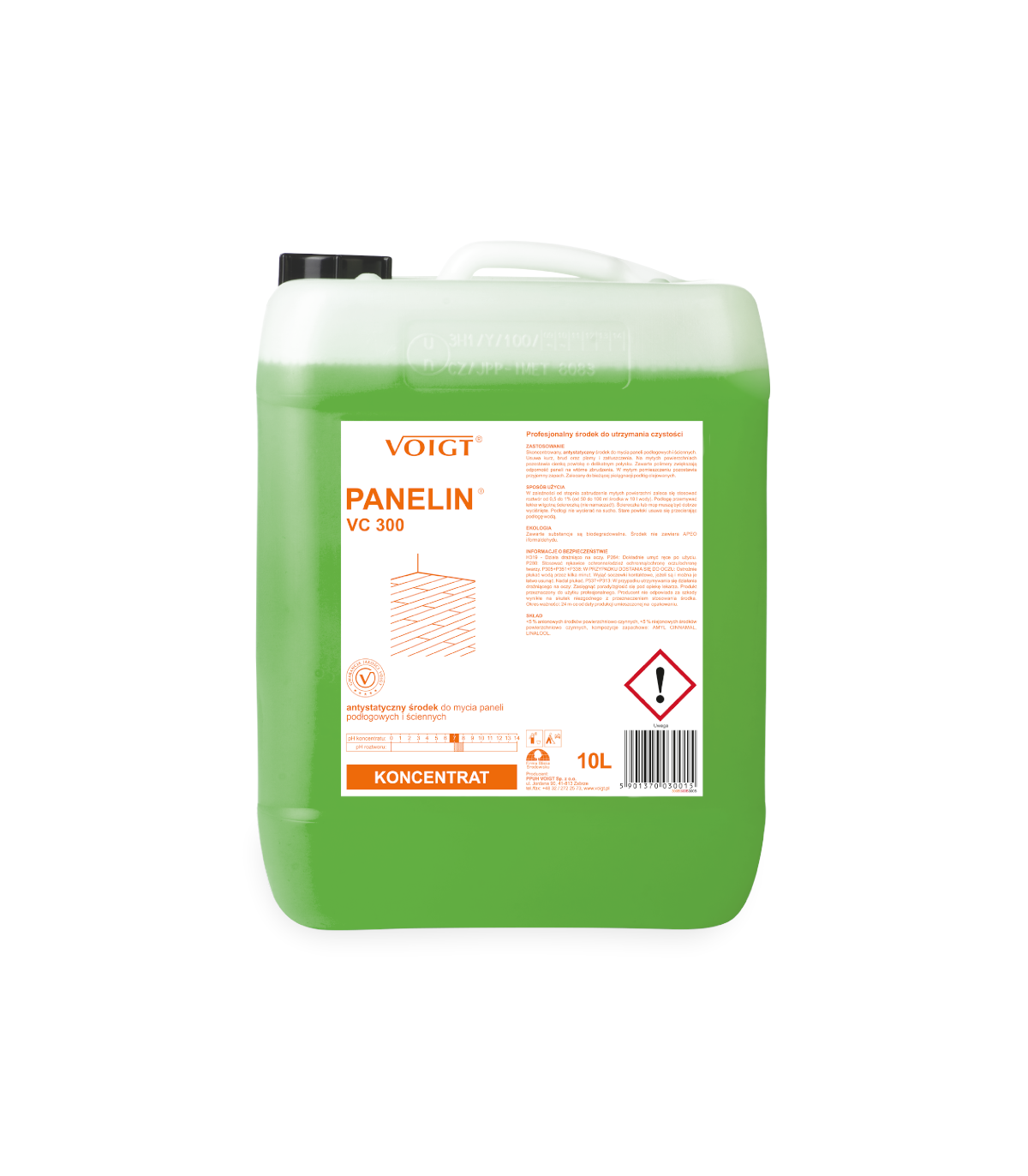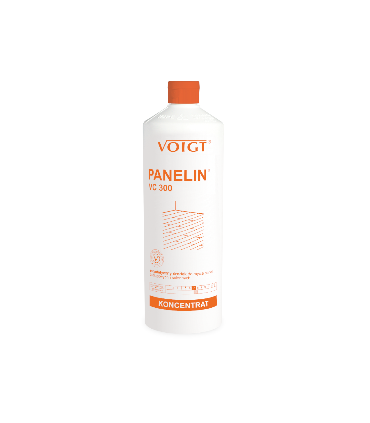 VC 300 PANELIN polskiej marki VOIGT to skoncentrowany, antystatyczny środek do mycia paneli klasycznych paneli podłogowych, paneli winylowych oraz ściennych i lakierowanych podłóg drewnianych. Usuwa kurz, brud oraz plamy i zatłuszczenia. Na mytych powierzchniach pozostawia cienką powłokę o delikatnym połysku.