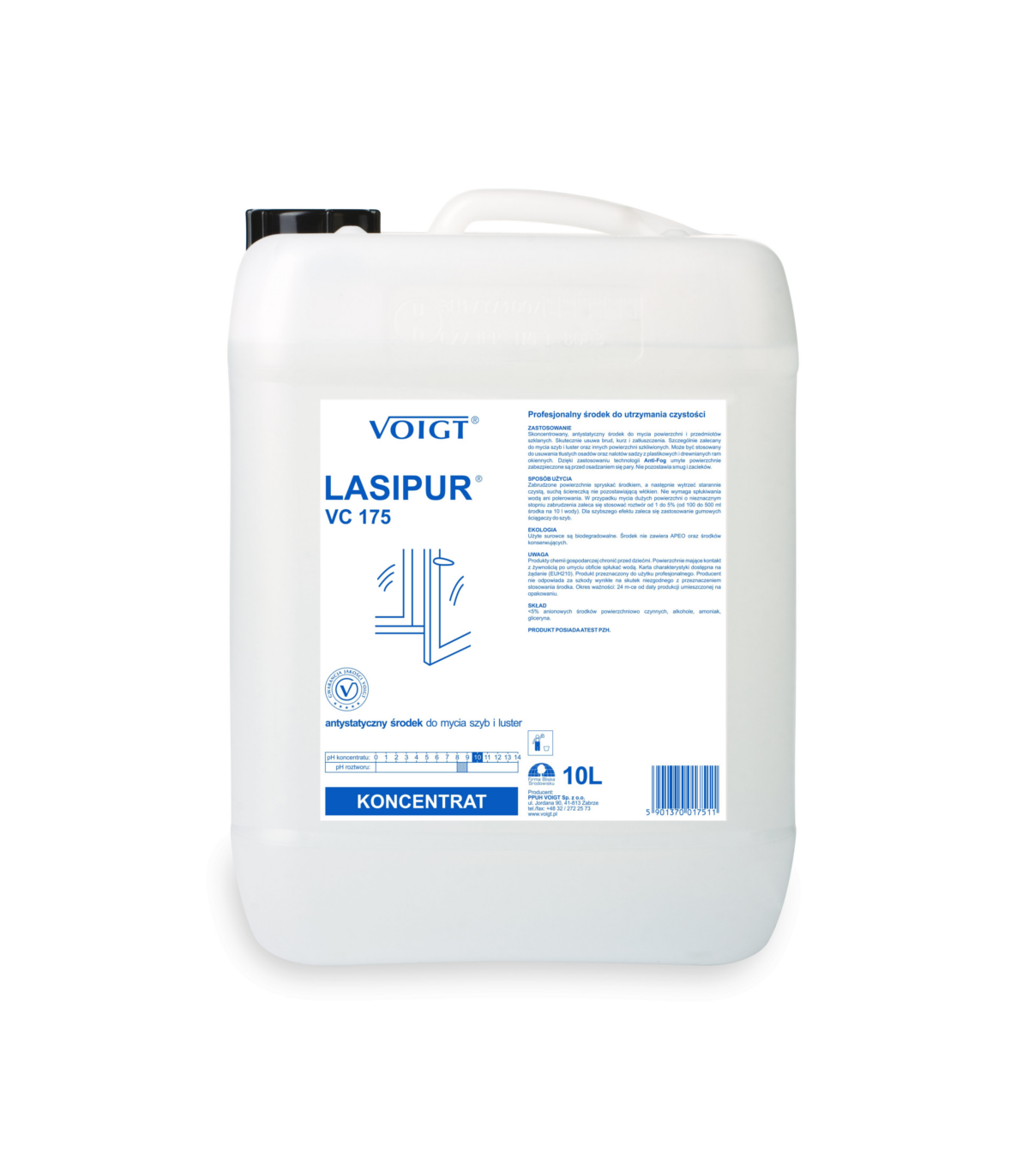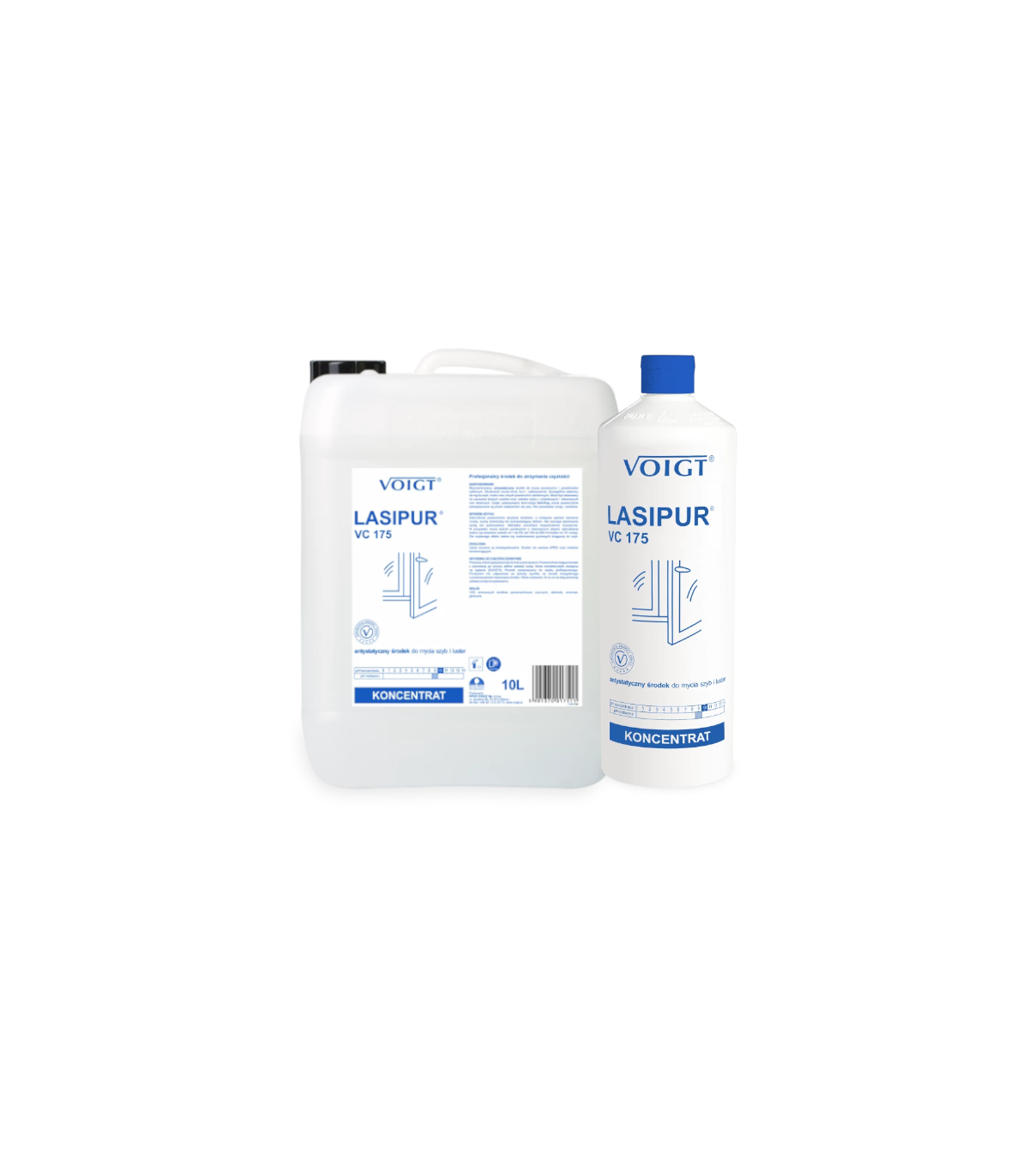 VC 175 LASIPUR marki VOIGT to skoncentrowany, antystatyczny środek do mycia powierzchni i przedmiotów szklanych. Skutecznie usuwa brud, kurz i zatłuszczenia. W szczególności polecany do mycia okien, witryn i przeszkleń przy pomocy ściągaczki i baranka.