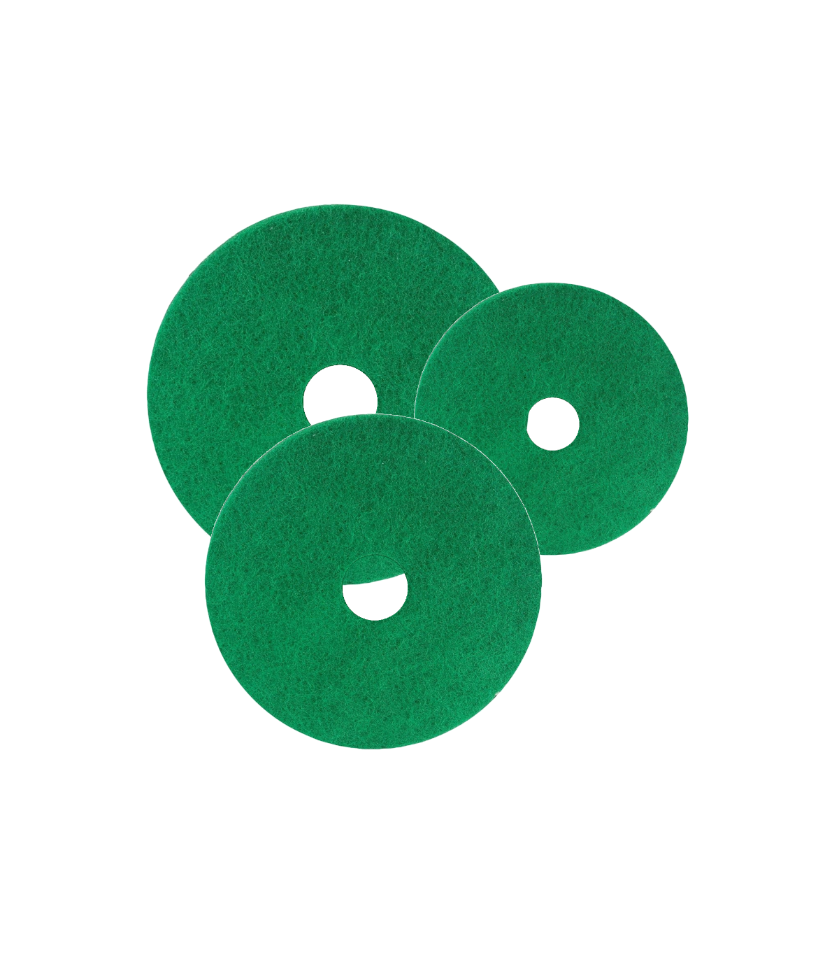 Twardy i wytrzymały pad przeznaczony do doczyszczania i bieżącego mycia wszelkiego typu podłóg i posadzek mocniej zabrudzonych, czyszczonych okresowy i często uczęszczanych. Zwiększona twardości i gramatura pozwala na skuteczniejsze doczyszczanie trudnych do usunięcia zabrudzeń, takich jak nawarstwiony brud, ślady po oponach czy zabrudzenia przemysłowe. Świetnie sprawdzi podczas czyszczenia garaży, posadzek przemysłowych, ciągów komunikacyjnych, hal produkcyjnych, magazynów czy basenów. Pad zielony usuwa wierzchnią warstwę uszkodzonych i zabrudzonych powłok zabezpieczających w celu renowacji. Nadaje się do doczyszczana wszelkiego typu posadzek i podłóg twardych, takich jak wykładziny PCV, podłogi kamienne oraz betonowe, płytki, wykładziny przemysłowe czy sportowe.