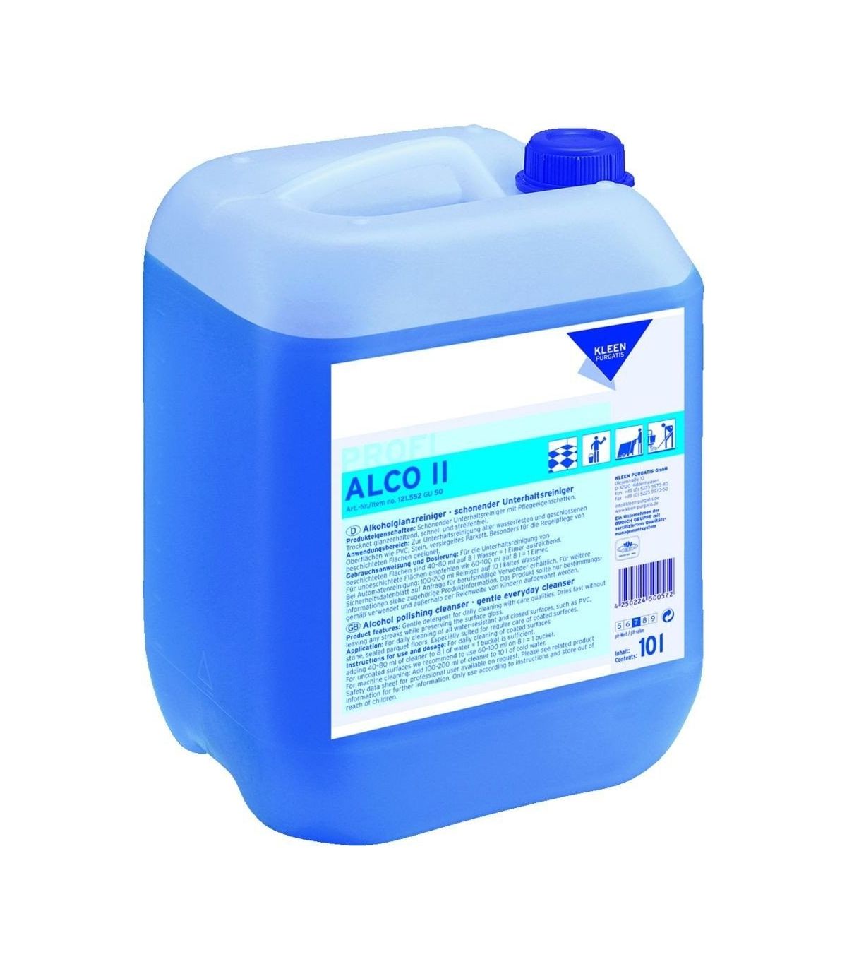 ALCO II niemieckiej marki KLEEN to skoncentrowany środek do bieżącego mycia podłóg i powierzchni odpornych na działanie wody. Preparat na bazie alkoholu, szybko wysycha nie pozostawiając smug i zacieków. W mytych pomieszczeniach pozostawia przyjemny, delikatny kwiatowy zapach. Pomimo niskiej ceny środek jest bardzo wydajny, wykazuje bardzo dobre właściwości myjące i pielęgnujące. Polecany do mycia często uczęszczanych powierzchni w miejscach, w których liczy się przede wszystkim niski koszt sprzątania, takich jak klatki schodowe, kamienice, bloki mieszkalne, szkoły, magazyny, szatnie, garaże, przedszkola. Świetnie sprawdzi się w okresie zimowym - skutecznie usuwa zacieki i plamy po soli drogowej.
