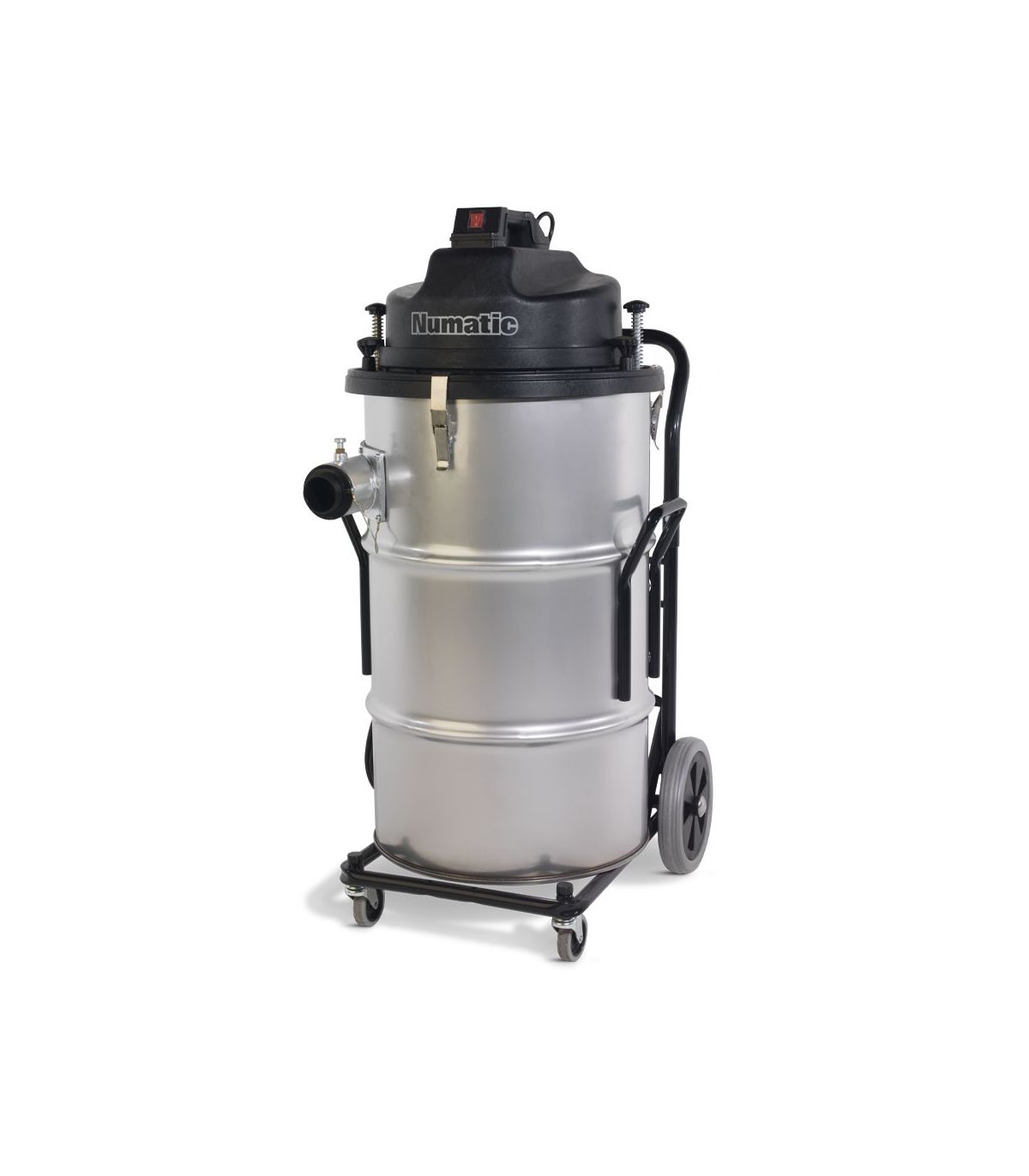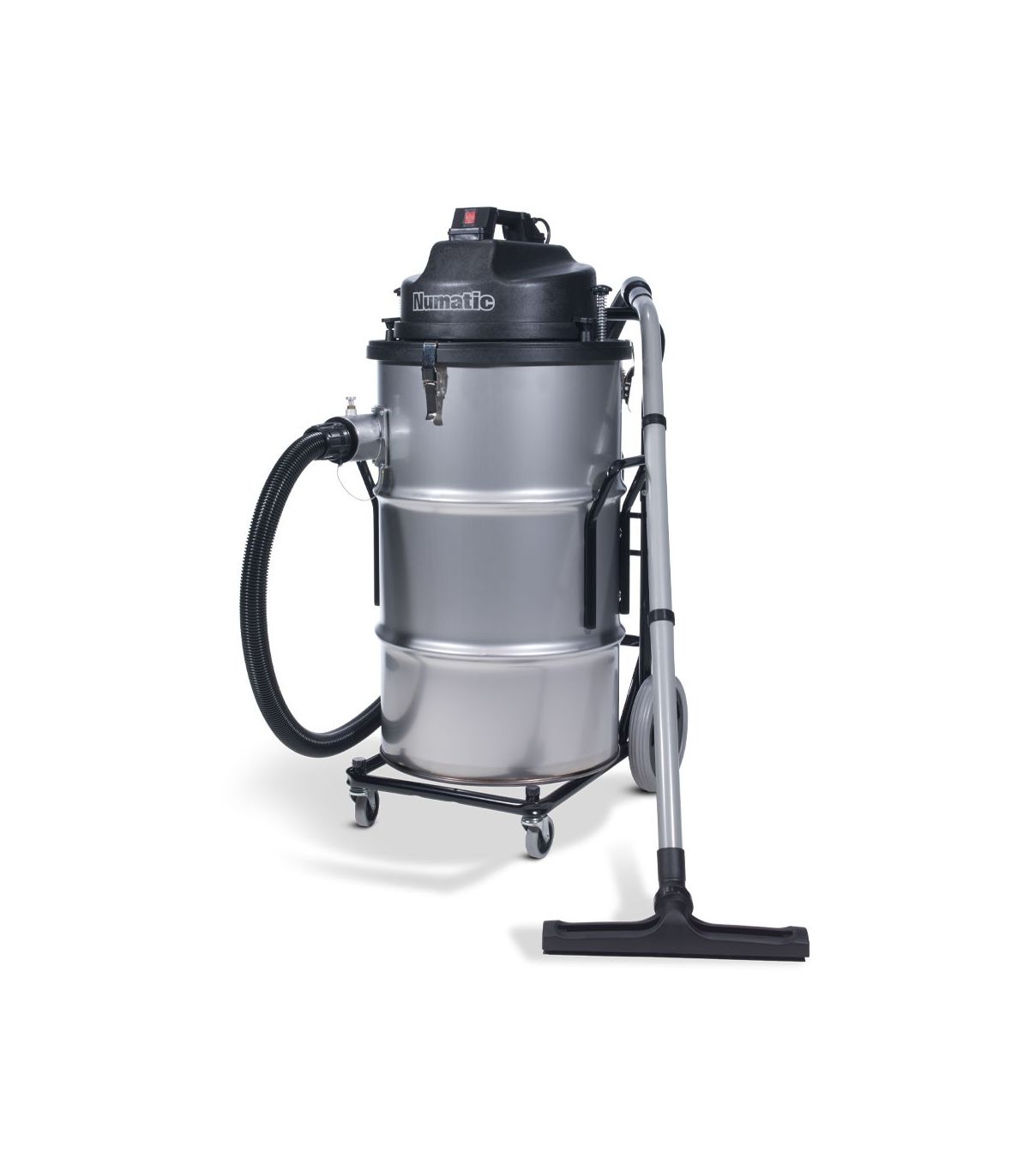 NTD 2003-2 angielskiej marki Numatic to duży, przemysłowy odkurzacz dwusilnikowy przeznaczony do pracy na sucho i zbierania różnego rodzaju zanieczyszczeń suchych w tym drobnych pyłów. Wyposażony w zaawansowany system filtracji Cyclon, dwie przemysłowe turbiny TwinFlo oraz wbudowany otrząsacz filtra.