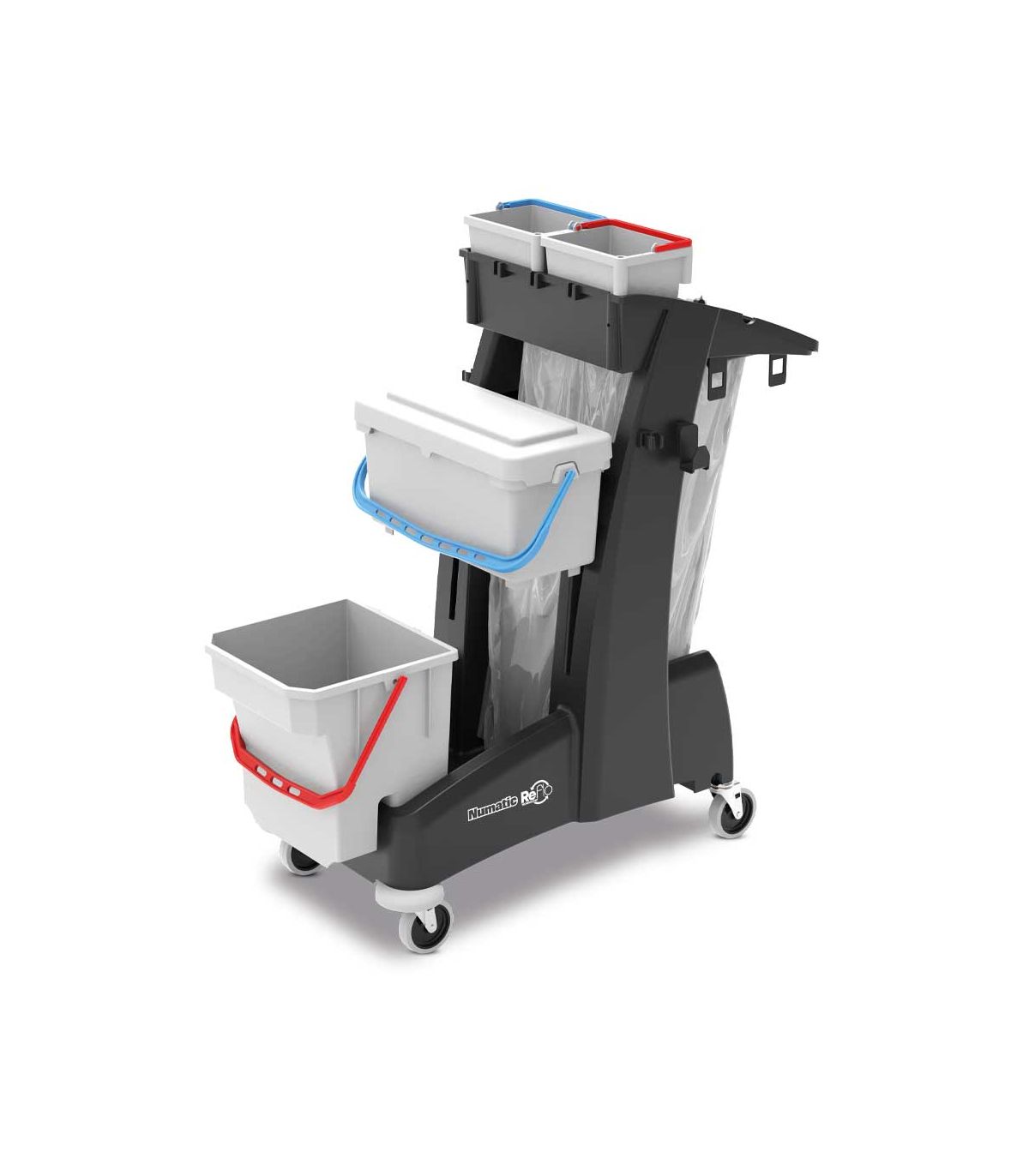 Wózek MM8 MultiMatic to wydajne i funkcjonalne narzędzie do profesjonalnego sprzątania mopem jednego kontaktu małych przestrzeni, takich jak sklepy, szkoły, szpitale, biura, a nawet domy. Wykonany jest z najwyższej jakości plastiku pochodzącego z recyklingu. Ze względu na swoją lekką konstrukcję wózek znakomicie sprawdza się w przestrzeniach o ograniczonym dostępie.