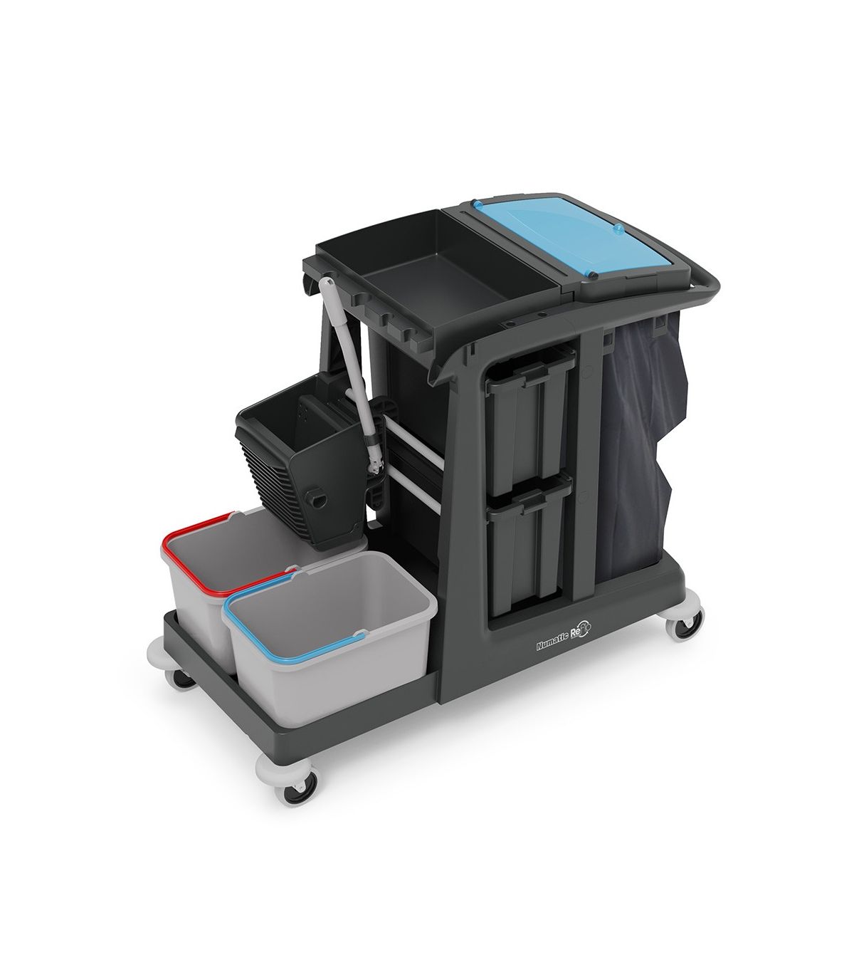 Wózek serwisowy ECO-Matic EM5 angielskiej marki Numatic to kompletnie wyposażony, kompaktowy i ekonomiczny wózek serwisowy. Trwała i estetyczna konstrukcja doposażona w uniwersalną wyciskarkę, kuwety oraz uchwyt na duży worek na odpady. Wymiary 54,5 x 116 x 100