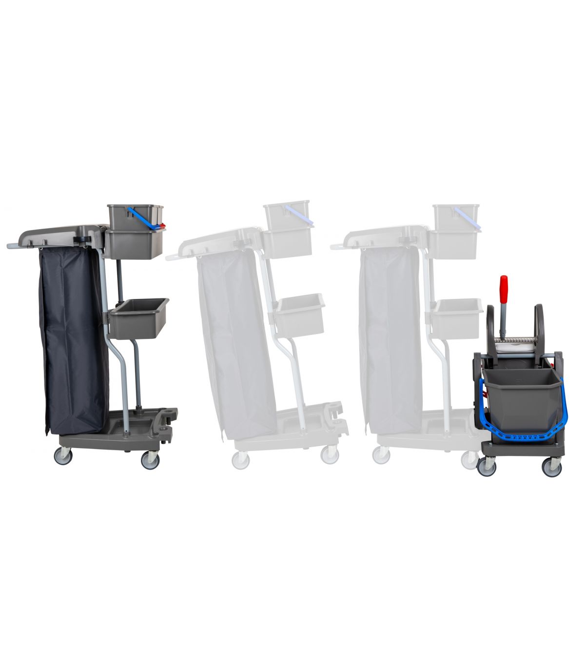 Nowoczesny i solidnie wykonany wózek serwisowy włoskiej marki VDM. Oparty o dwa osobne moduły " TRANSFORMERS" z możliwością szybkiego rozłączenia. Wykonany z wysokiej jakości tworzywa, wyposażony w dwa duże dwudziestolitrowe wiadra na brudną i czystą wodę kuwety, wiaderka oraz uniwersalną wyciskarkę szczękową z rączką. Możliwość dokupienia Pokrywy na worek i worka wielokrotnego użycia / opcja