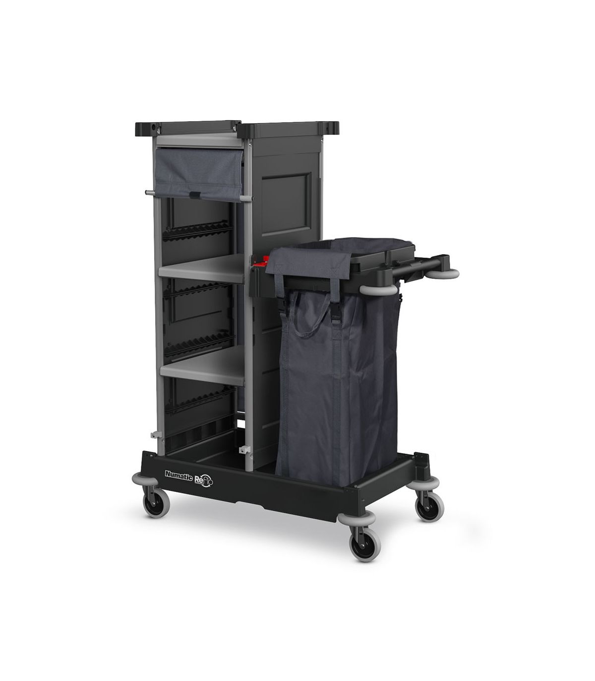 NKS 1 angielskiej marki Numatic to zwrotny i kompaktowy wózek hotelowy. Przeznaczony do przewożenia i wymiany pościeli oraz wszelkiego wyposażenia pokoi hotelowych. Wyposażony w trzy duże wewnętrzne półki zasuwane roletą oraz jedną, górną zewnętrzną z możliwością rozbudowy. Model NKS 1 posiada jeden duży worek brezentowy o pojemności 100 litrów.