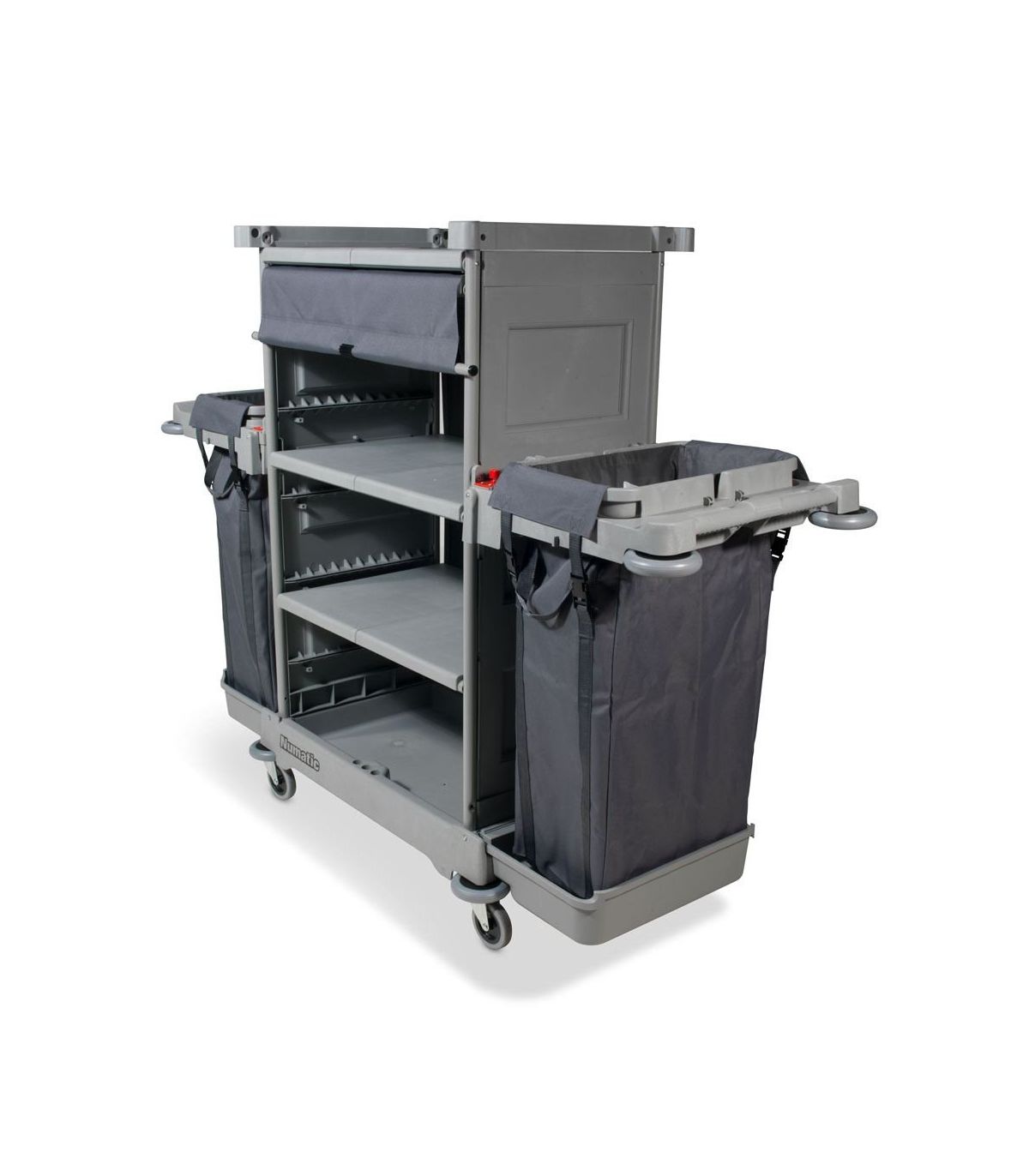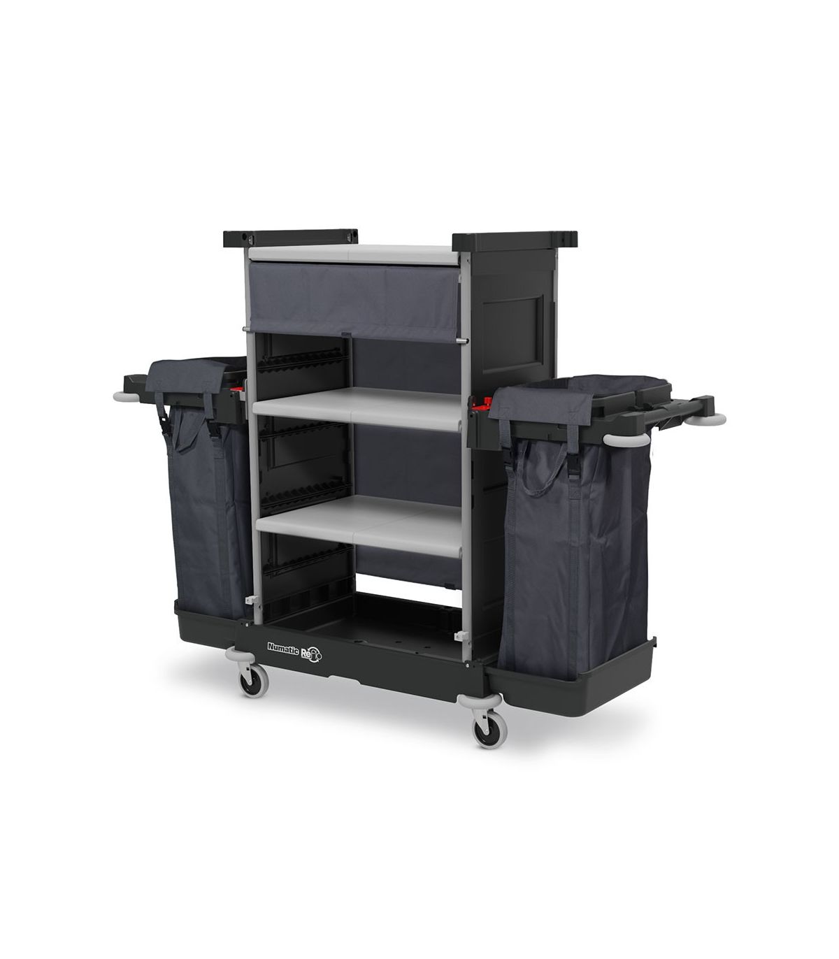 NKT 2 R angielskiej marki Numatic to wielofunkcyjny, duży wózek przeznaczony do przewożenia bielizny i wszelkiego wyposażenia hotelowego. Wyposażony w trzy szerokie wewnętrzne półki zasuwane roletą oraz jedną zewnętrzną. Model NKT 2 został wyposażony w dwa duże worki brezentowe o łącznej pojemności 200 litrów.
