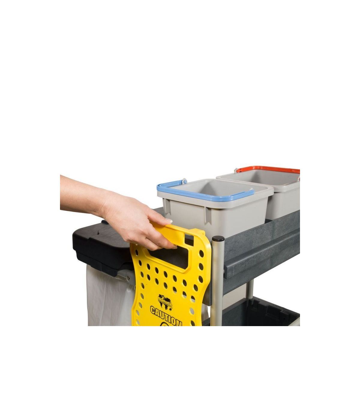 Serie wózków serwisowych SERVO MATIC 1415 cechuje ponadprzeciętna jakość wykonania, uniwersalna i kompaktowa konstrukcja, bogate i przemyślane wyposażenie oraz niezawodność. Konstrukcja wózka została wykonana z innowacyjnego tworzywa Structofoam, odpornego na obicia oraz pęknięcia materiału używanego również podczas produkcji maszyn czyszczących. Malowany proszkowo metalowy stelaż odporny na korozję zapewni estetyczny wygląd wózka na długie lata. Uniwersalna i niezawodna wyciskarka doczołowa Numatic z pianką pozwala na dokładne odciskanie każdego rodzaju mopa, ścierek czy ręcznych padów. Stelaż na worek z pokrywą w zależności od preferencji może być zamontowany w systemie 1x 120L lub 2x70L. Solidną konstrukcję uzupełniają kuwety oraz półki, w których w wygodny sposób można przewozić środki czystości oraz wszelkiego rodzaju sprzęt ręczny i akcesoria do sprzątania. Całość konstrukcji dzięki zastosowaniu grafitowych i ciemnych kolorów popularnych w branży hotelarskiej, nie rzuca się w oczy i pozwala w łatwy sposób utrzymywać wózek w czystości. Wózek został wykonany w technologii ReFlo - tworzywo pochodzące w 88% z recyclingu.