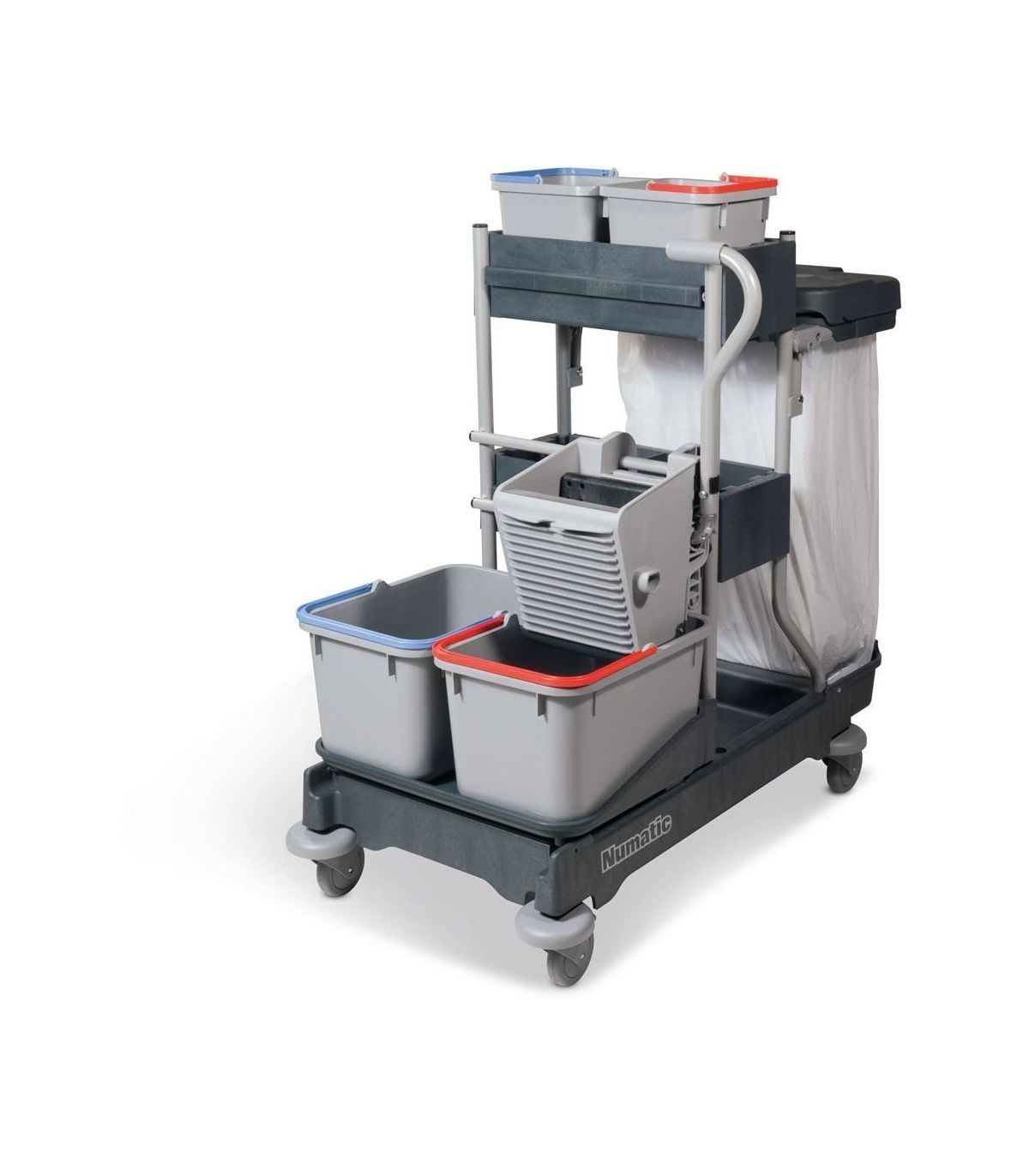 Wózki wycofane z produkcji SM 1415 SRK1 angielskiej marki Numatic to Profesjonalny wózek serwisowy do mycia dużych powierzchni systemem dwuwiadrowym. Wyposażony w niezawodną i uniwersalną wyciskarkę płaską, podstawę z uchwytem na worek, półką oraz wiaderka. Podstawa wykonana z wytrzymałego, odpornego na obicia i działanie silnej chemii tworzywa Structofoam.