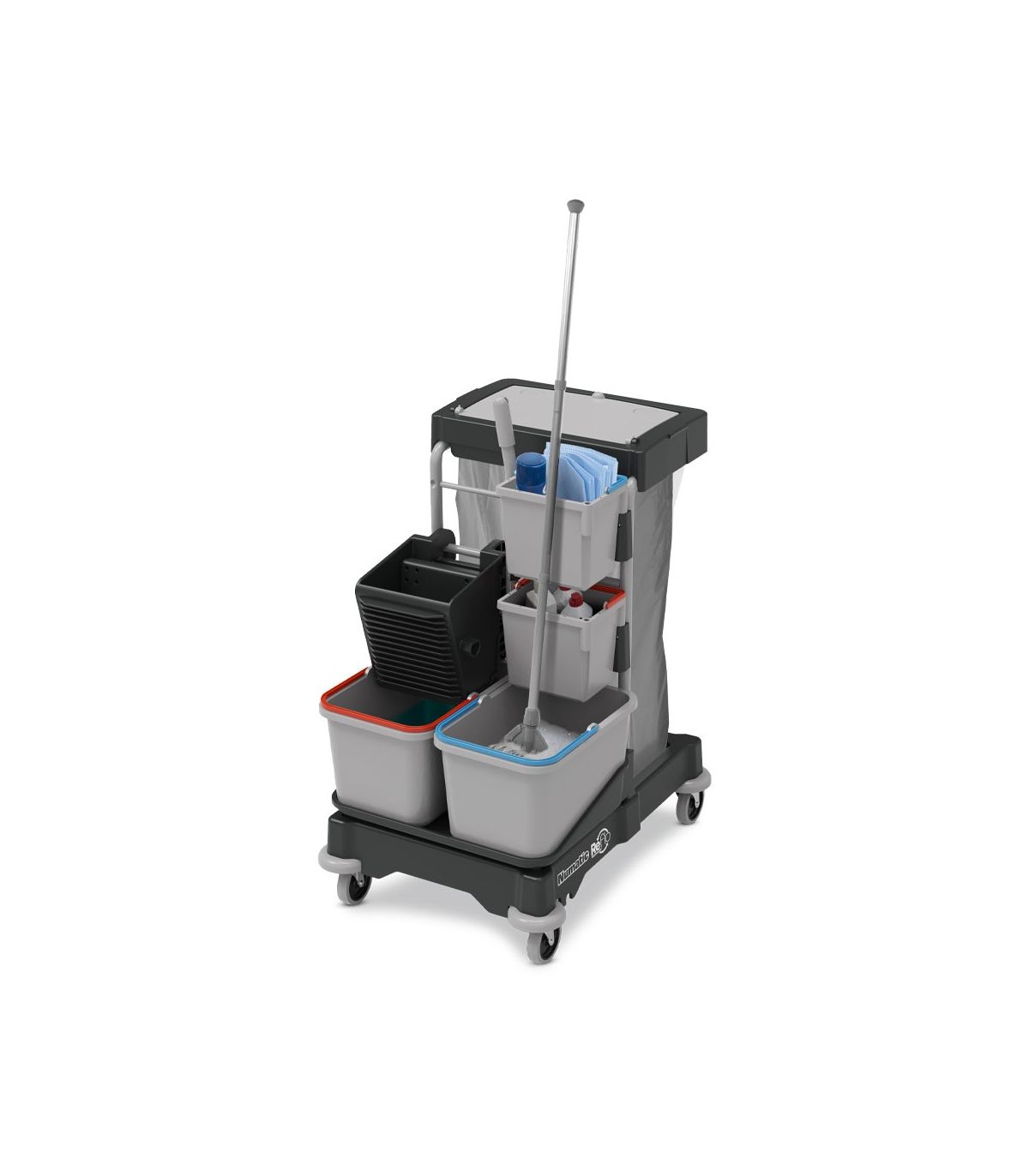 SM 1405 to kompaktowy, wielofunkcyjny zestaw sprzątający angielskiej marki Numatic przeznaczony do utrzymania czystości na średniej i małej wielkości obiektach. Dodatkowe uchylne wiaderka na akcesoria, uniwersalna wyciskarka do mopów i ścierek oraz duży kosz na odpady z klapą czynią ten model pełnoprawnym wózkiem serwisowy do kompleksowego utrzymania czystości zarówno podłóg, jak i powierzchni pionowych i wyposażenia pomieszczeń. Serie wózków SERVO-Matic cechują przede wszystkim ponadprzeciętna jakość wykonania oraz estetyczny i ponadczasowy design.